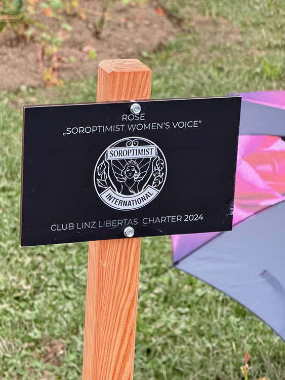 Soroptimist Women’s Voice – so heißt die SI Rose, die uns Soroptimist Europe Extension Committee Chairperson Alice Even (SI Clairefontaine, Luxembourg, Member since 2001) zu unserer Charterfeier 2024 geschenkt hat.
